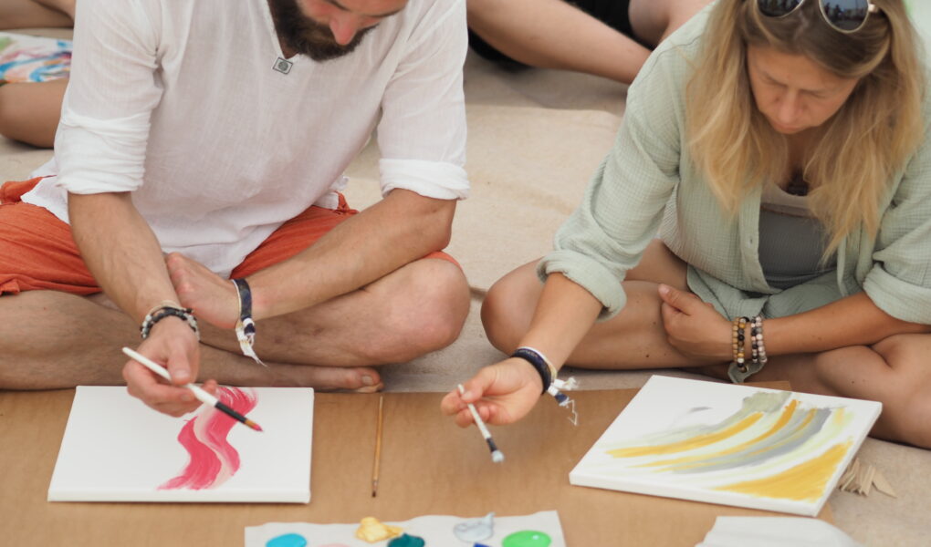 Il ne s’agit pas de devenir peintre lors de cette retraite. Je ne vais pas vous enseigner une quelconque technique artistique. Il s’agit plutôt de puiser en nous ce qui est déjà présent. D’oser y mettre le focus et le sortir à la lumière. Exprimer, librement, ce qui a besoin d’être vu.